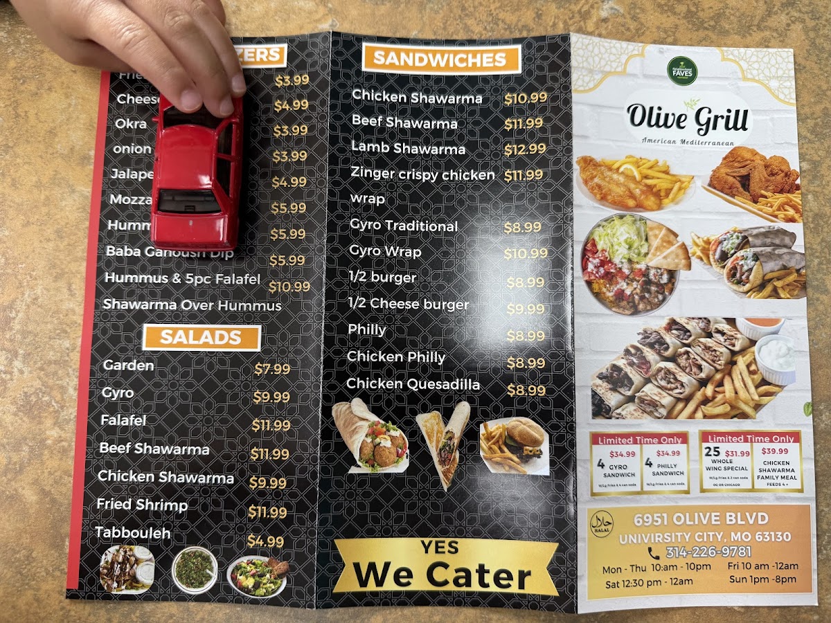 Chicken shawarma , shaved gyro,taziki sauce, tomatoes, onions, and middleeastern pickles wrapped in a tortilla toasted on flat grill