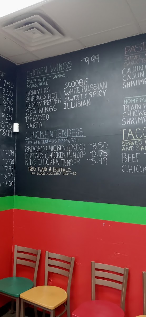 2-3 pcs of chopped chicken tenders, shredded Cheddar Cheese cheese, thinly sliced cucumber pickles, lettuce,mild spicy garlic sauce grill Pressed tortilla wrap , cut into 7 finger bite pieces and served with seasoned fries, mild spicy Garlic Sauce and mediterranean pickles.